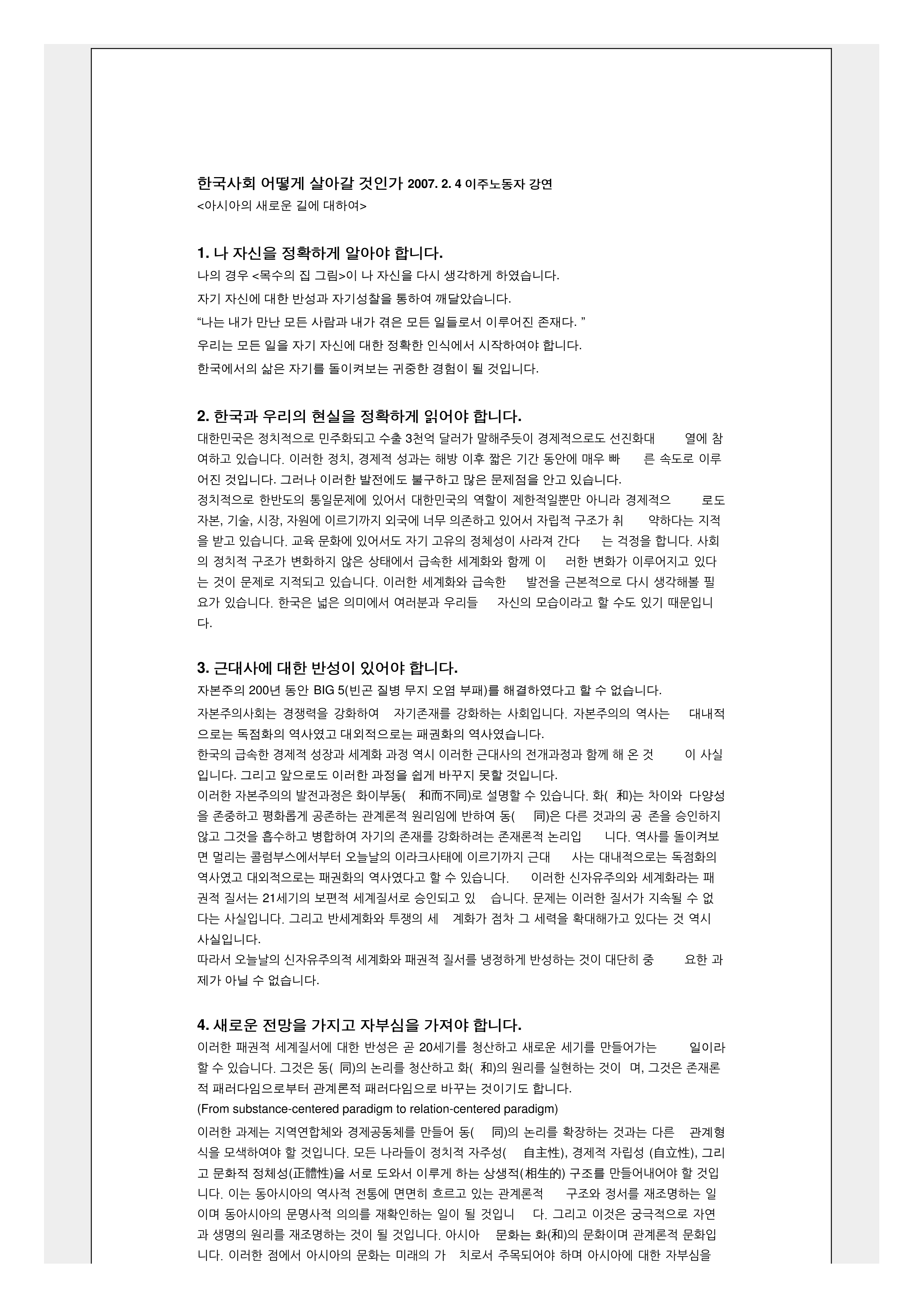 [강연] “하고 싶고, 잘하는 일을 오래 하자”-한국사회포럼 2006