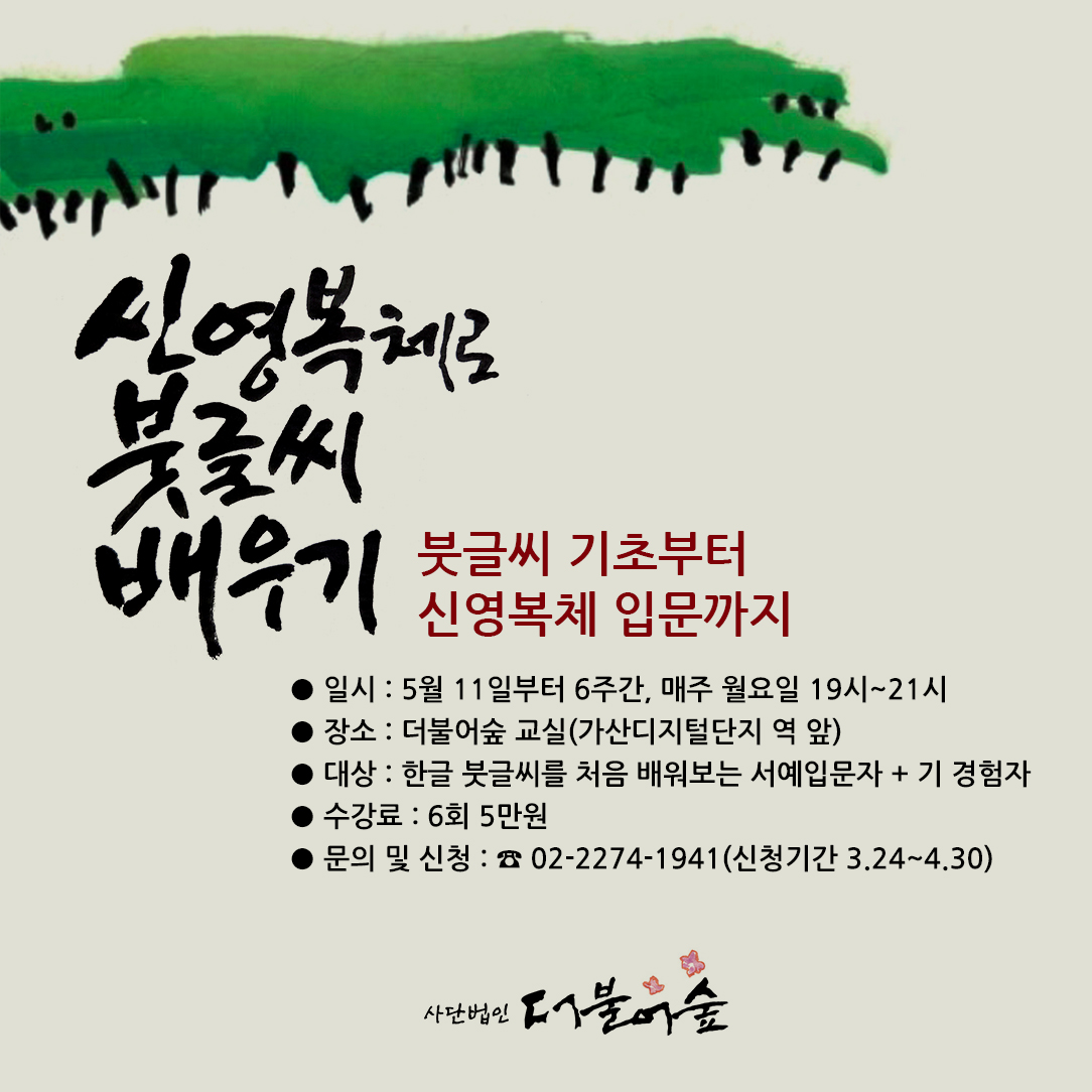 대상 : 한글 붓글씨를 처음 배워보는 서예입문자 + 기 경험자