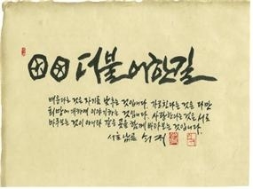노회찬, '마음의 스승' 신영복을 만나다 [노회찬 OOO를 만나다] '미완의 기록'으로 본 노회찬과 신영복 (1) 조현연 노회찬재단 특임이사 2019.01.15 09:45:09 노회찬은 항상 '영감'을 주던 사람이었습니다. 그는 세상을 등졌지만, 세상은 그에게 빚을 졌다고 생각합니다. <프레시안>은 노회찬재단과 함께 '노회찬 OOO를 만나다' 연재를 시작합니다. 노회찬재단과 <프레시안>은 정치가 바른 방향으로 나아가길 바란다는 점에서, 같은 생각을 품고 있다고 봅니다. 노회찬이 만난 사람, 노회찬의 생각, 노회찬의 꿈에 대한 이야기를 노회찬재단과 함께 연재하고자 합니다. 편집자. "마음으로부터 모시는 스승입니다. 저에겐 아직 스승을 평가할 자격과 능력이 모자랍니다. 신 선생님의 말과 글, 활동에서 저는 한 시대를 고뇌하는 실천가의 진수를 보아왔습니다. 선생의 사상과 철학은 금방 적장의 목을 벨 듯한 단호함과 엄중함으로 가득 차 있지만 동시에 인간의 체온을 따뜻하게 담고 있습니다. 이론과 사상이 이처럼 자신의 삶과 실천에 잘 녹아 있는 경우를 저는 일찍이 보지 못했습니다." - <노회찬-정운영이 만난 우리 시대 진보의 파수꾼>(랜덤하우스중앙, 2004, 124쪽)에서 노회찬이 신영복 선생에 대해 한 말. 3년 전인 2016년 1월 15일 오늘은 노회찬이 '마음의 스승'으로 존경한 신영복(申榮福) 선생님이 75세의 나이로 먼 길을 떠난 날이다. 20년 20일을 감옥에서 보내고 1988년 8월 14일 특별가석방된 신영복은, 출소 10년 후인 1998년 3월 13일에 사면 복권으로 공민권을 회복, 18년 가까이 자유인으로 산 뒤 세상을 떠났다. 2016년 1월 7일 노회찬은 후원회장인 조국 교수와 점심을 같이 한다. 헤어진 뒤 얼마 있다가 그로부터 연락을 받는다. 신영복 선생님이 위중하신 것 같다는 거였다. 노회찬은 일정을 취소하고 서울 목동 자택으로 방문, 이생에서 선생과의 마지막 만남을 한다. 며칠 뒤 노회찬은 그날의 만남에 대해 이렇게 적고 있다. 며칠 남지 않았다는 전갈을 받고 황급히 댁으로 찾아뵌 것이 열흘 전이었습니다. 선생님은 연명치료를 받지 않는 환자라고 믿기 어려울 정도로 특유의 평온하고 온화한 표정에 간간이 미소를 머금으며 오히려 저를 격려하셨지요. 이것이 이승에서의 마지막 작별의 만남이라는 것을 미루어 짐작하면서도 선생님은 걱정 말라고 더 건강해지겠노라고 약속하셨고, 저도 다시 뵙겠다며 평소처럼 헤어졌습니다. 그 후 마음의 준비를 했습니다만, 막상 비보를 접하니 가슴이 무너지는 느낌입니다. 언젠가 한번은 가는 길이라지만 선생님! 어찌 그리 바삐 가시려 합니까? 선생님께선 같은 시대를 살아가는 많은 사람들에게 마음으로부터의 큰 스승이셨습니다(경향신문, 2018.1.18.). 다가오는 헤어짐의 시간, 안타까움과 그리움을 트위터에 헤어짐의 시간이 점점 더 다가오고 있는 것을 직감했는지, 사흘 뒤인 1월 10일 밤 노회찬은 트위터에 신영복의 시화 여덟 작품을 잇따라 올리는 것으로 "마음의 스승"에 대한 안타까움과 그리움을 표한다. <2016년 1월 10일 오후 10시 3분 트위터> 밤이 깊을수록 별이 더욱 빛난다는 사실은 힘겹게 살아가는 모든 사람들의 위로입니다. 몸이 차가울수록 정신은 더욱 맑아지고 길이 험할수록 함께 걸어갈 길벗을 더욱 그리워합니다. <오후 10시 9분 트위터> 참된 자유(自由)는 자기(自己)의 이유(理由)를 갖는 것입니다. -신영복 <오후 10시 12분 트위터> 배운다는 것은 자기를 낮추는 것입니다. 가르친다는 것은 다만 희망에 대하여 이야기하는 것입니다. 사랑한다는 것은 서로 마주보는 것이 아니라 같은 곳을 함께 바라보는 것입니다. -신영복 <오후 10시 26분 트위터> 가장 먼 여행은 머리에서 가슴까지라 합니다. 사상(cool head)이 애정(warm heart)으로 성숙하기까지의 여정입니다. -신영복 <오후 10시 31분 트위터> 처음으로 하늘을 만나는 어린 새처럼 처음으로 땅을 밝고 일어서는 새싹처럼 우리는 하루가 저무는 저녁 무렵에도 아침처럼 새봄처럼 처음처럼 다시 새날을 시작하고 있다 –신영복 <오후 10시 40분 트위터> 처음으로 쇠가 만들어졌을 때 세상의 나무들이 두려움에 떨었다 그러자 어느 깨어있던 나무가 말했다 두려워할 것 없다 우리들이 자루가 되어주지 않는 한 쇠는 결코 우리를 해칠 수 없는 법이다. <오후 10시 56분 트위터> 돕는다는 것은 우산을 들어주는 것이 아니라 함께 비를 맞는 것입니다. -신영복 <오후 11시 16분 트위터> 머리좋은 것이 마음좋은 것만 못하고 마음좋은 것이 손좋은 것만 못하고 손좋은 것이 발좋은 것만 못한 법입니다. -신영복 1월 16일 밤 노회찬은 두어 시간 전 영면에 든 신영복을 생각하며 트위터에 글을 쓴다. "신영복 선생님! 더 이상 가망이 없다는 소식을 듣고 8일 전 하직인사 드리러 갔을 때 제게 말씀하셨죠. '걱정마세요. 더 건강해질게요.' 그날 이후 마음의 준비를 하고 있었지만 막상 비보를 접하니 억장이 무너집니다. 선생님!" 그리고는 밤 12시경 "언약은 강물처럼 흐르고 만남은 꽃처럼 피어나리", "궁극에 처하면 변화하고 변화하면 열립니다. 열려 있으면 오래 갑니다. 변화와 소통이 생명입니다." 등 두 개의 시화를 트위터에 올린다. <1월 16일 새