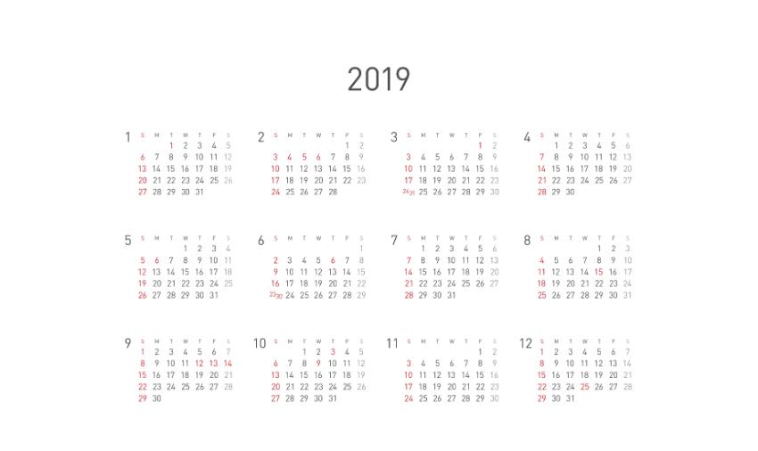 2019년 달력