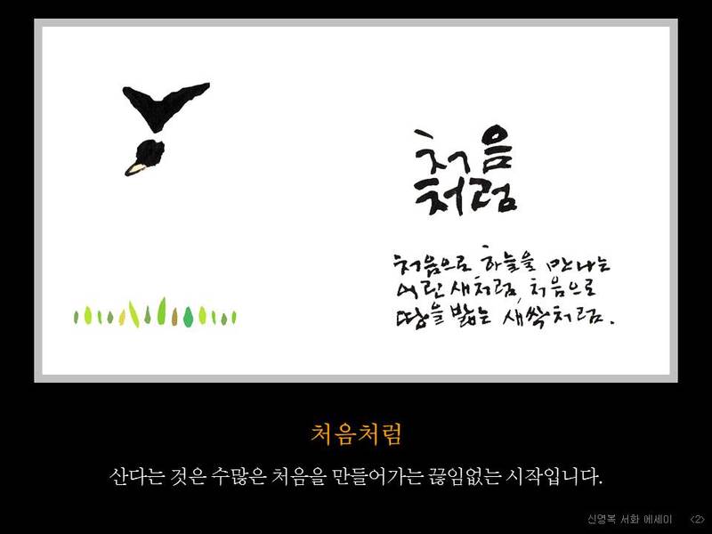 처음으로 하늘을 만나는 어린 새처럼, 처음으로 땅을 밟는 새싹처럼. 산다는 것은 수많은 처음을 만들어가는 끊임없는 시작입니다. 돌베개