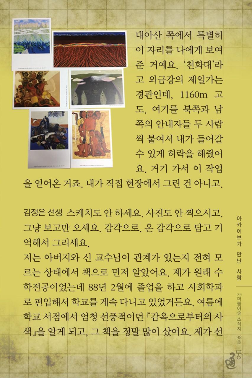 아카이브 팀은 지난 6월 21일 오후, 김영덕 화백과 그 따님 김정은 선생님을 만났습니다. 그 인터뷰 요약을 지난 달에 이어 싣습니다.