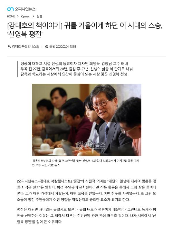 [강대호의 책이야기] 귀를 기울이게 하던 이 시대의 스승, '신영복 평전'