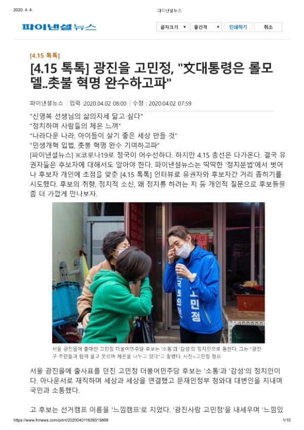 [4.15 톡톡] 광진을 고민정, "文대통령은 롤모델..촛불 혁명 완수하고파"