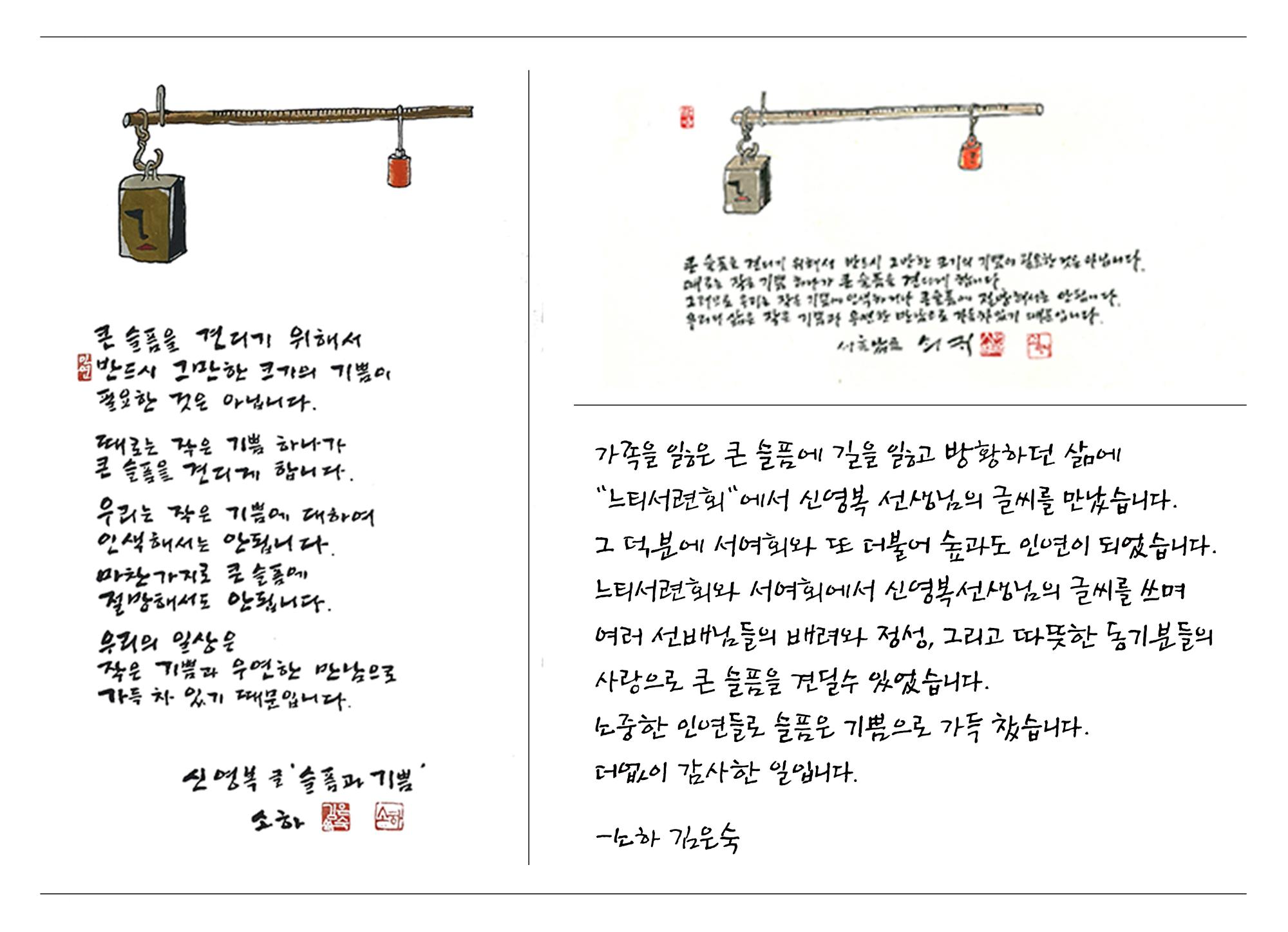 느티서련회와 서여회에서 신영복선생님의 글씨를 쓰며