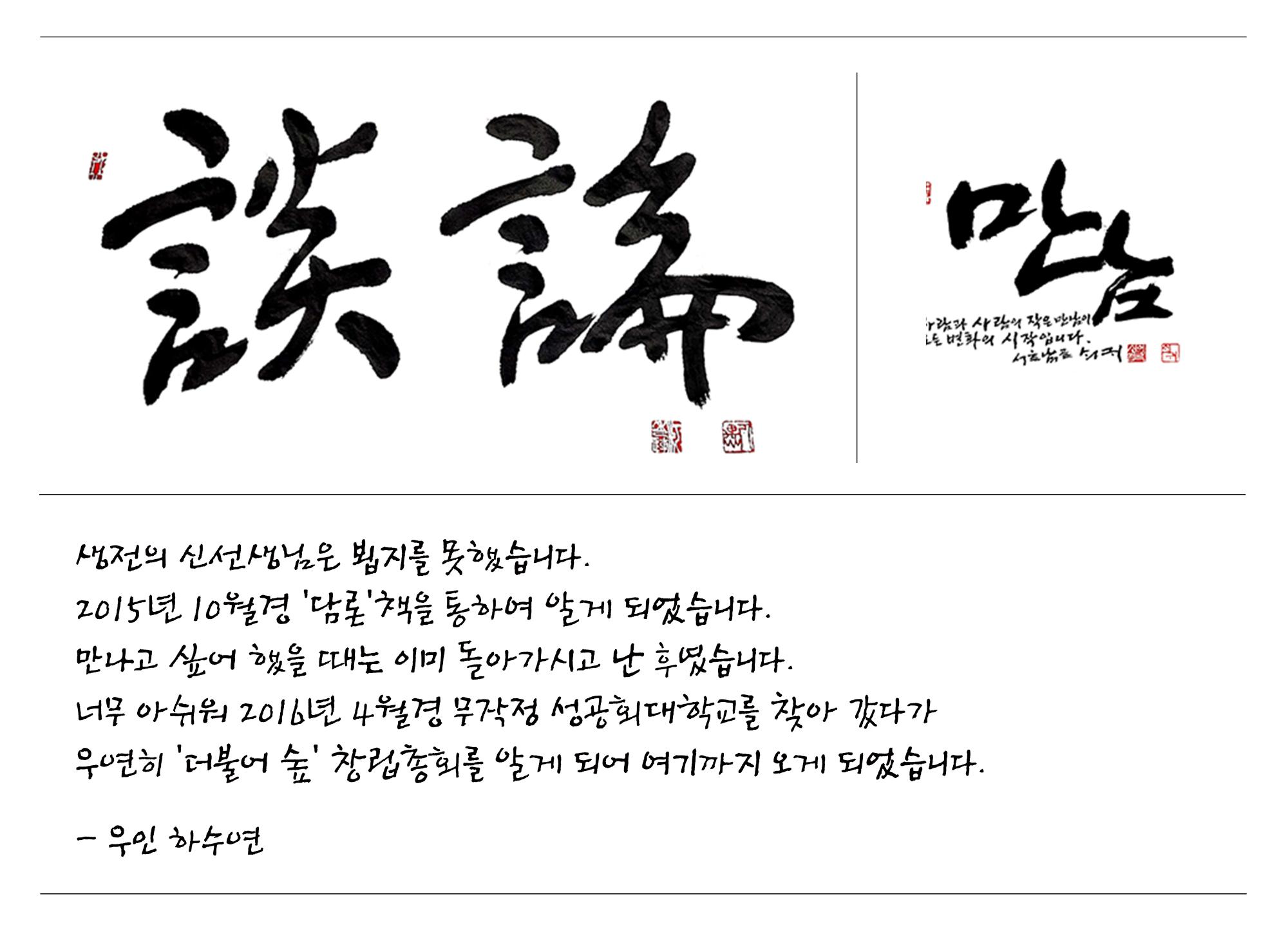 생전의 신선생님은 뵙지를 못했습니다.