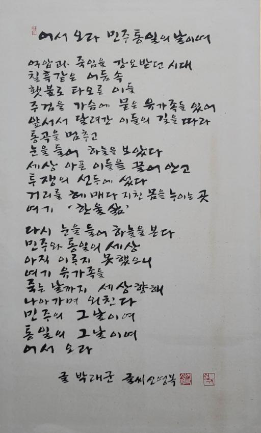 [서예] 어서오라 민주통일의 날이여