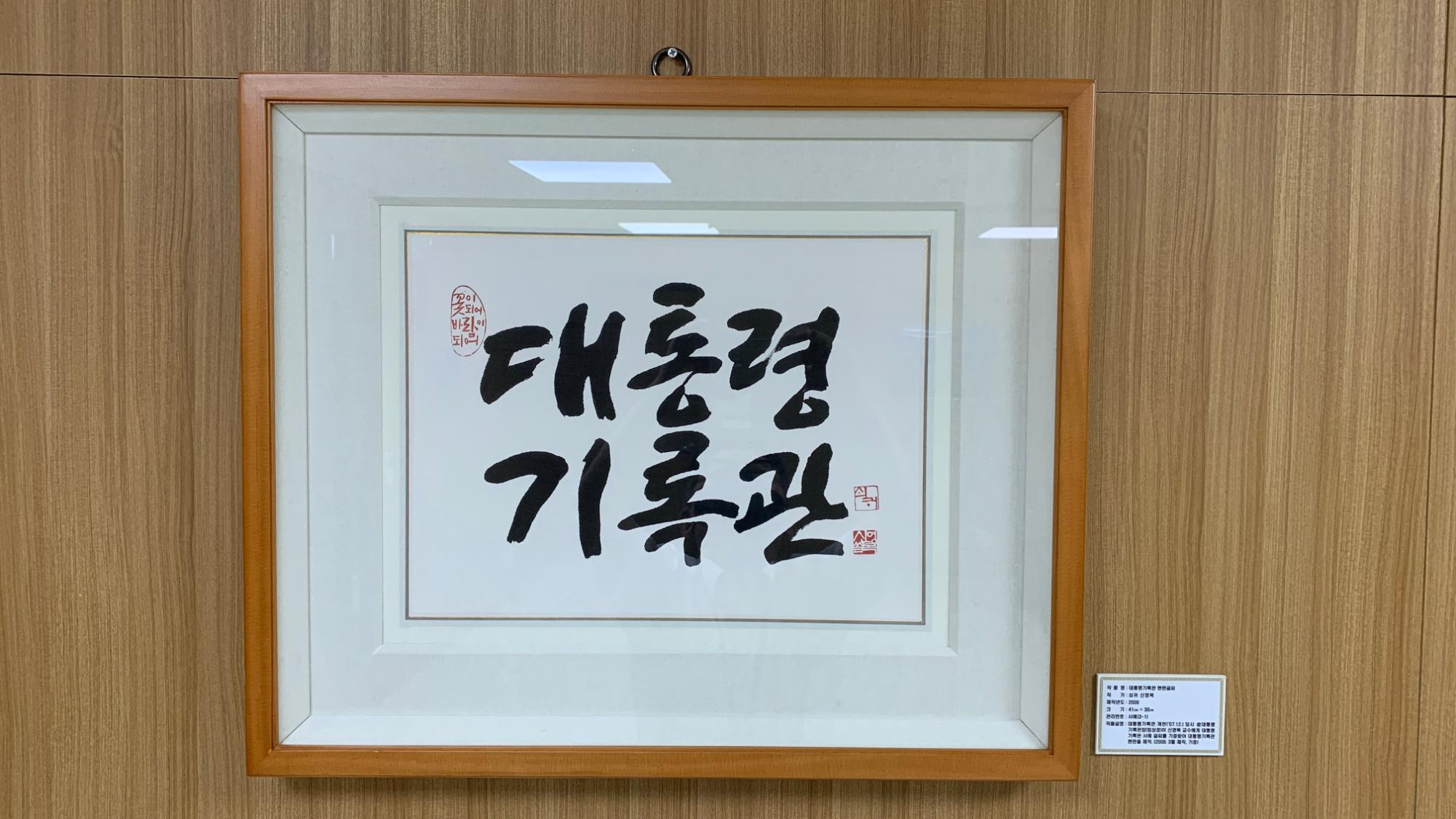 세종시 대통령기록관 소장 작품 (관장실 앞 위치함) 작 품 명 : 대통령기록관 현판글씨 작 가 : 쇠귀 신영복 제작연도 : 2008 크 기 : 42cm X 30cm 관리번호 : 서예(3-1) 작품설명 : 대통령기록관 개관('07.12) 당시 前대통령기록관장(임상경)이 신영복교수에게 대통령 기록관 서예 글씨를 기증받아 대통령기록관 현판을 제작. (2008. 3월 제작, 기증)
